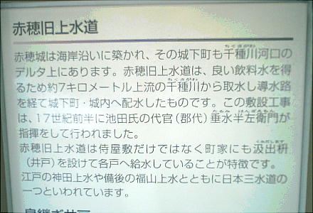 赤穂藩は成立当初より上水道を完備し、整然とした町屋が造られたがこの古い町並みは今も良く残されている。