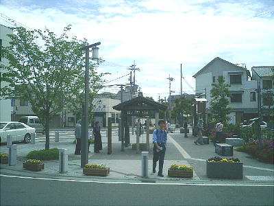 赤穂駅の中から見た駅前広場。