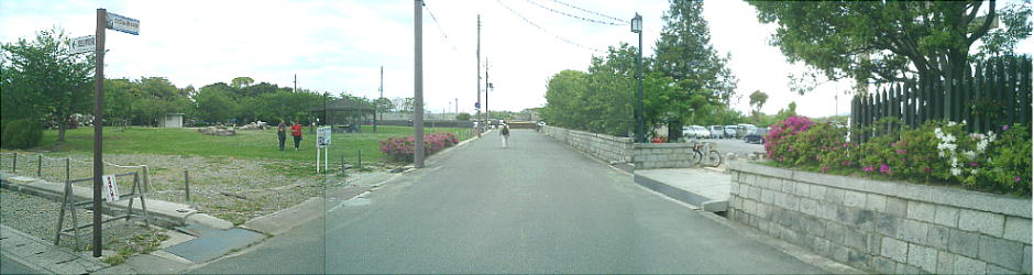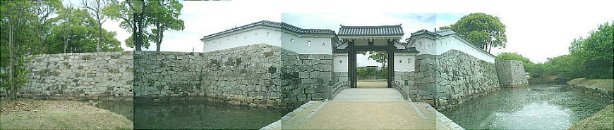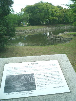 花岳寺からまっすぐ行って、掘に掛かる最初の門は、城跡に通じる門ではなく、大石内蔵助の屋敷跡(大石神社)に通