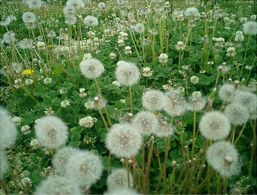 発掘現場のタンポポ。久しぶりに沢山のタンポポを見た。