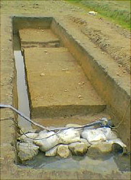溝は回廊わきに掘られた排水溝と見られている。平成12年12月4日から平成13年1月12日にかけて行われ