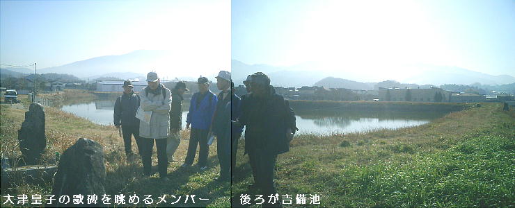 と比定されている場所にも、同じ歌の歌碑があるそうだが、今はその場所には池は跡形すらない。そして「百済大