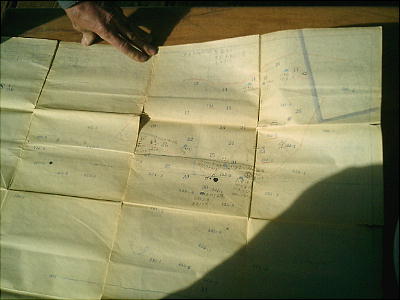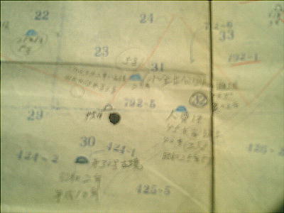 岸野さんが、持っている資料を色々と見せてくれた。発掘時の写真や、塚の分布図などもあって、まだ「秋多郡教育委