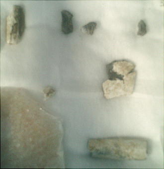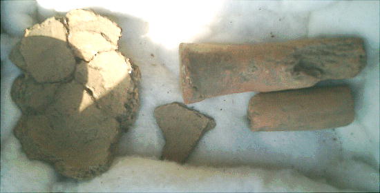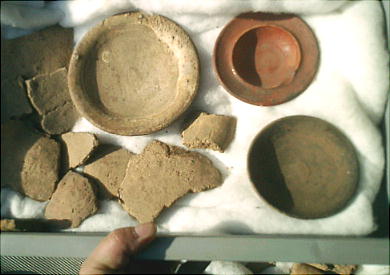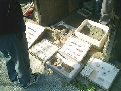 上右の土器は明らかに弥生土器の壺である。完形ならすばらしい土器だったろうに、惜しいなぁ、と呟いたら岸野さんも溜息をついた。