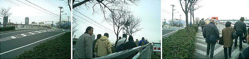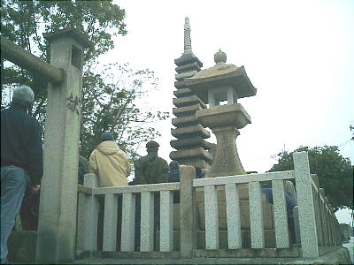 清盛塚のほうへ戻る。橋の上からみんなが川を眺めていた。でっかいボラの群れが泳いでいる。「これ、小骨が多うて