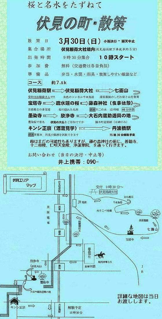 71回例会は京都伏見になったが、今回はずぼらして京阪電車が会員を募って4月5日に行おうとしている散策コースをそっ