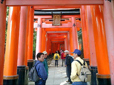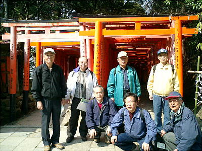 人が、真っ赤な「千本鳥居」を寄進している。「歴史倶楽部で1本寄進しようか?」「今、希望者が多くて建てて貰うには順