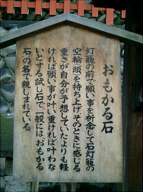 に「おもかる石」と呼ばれる石が鎮座していた。願い事をしながら抱きかかげ、その時重く感じたら願いは叶わず、軽ければ
