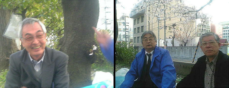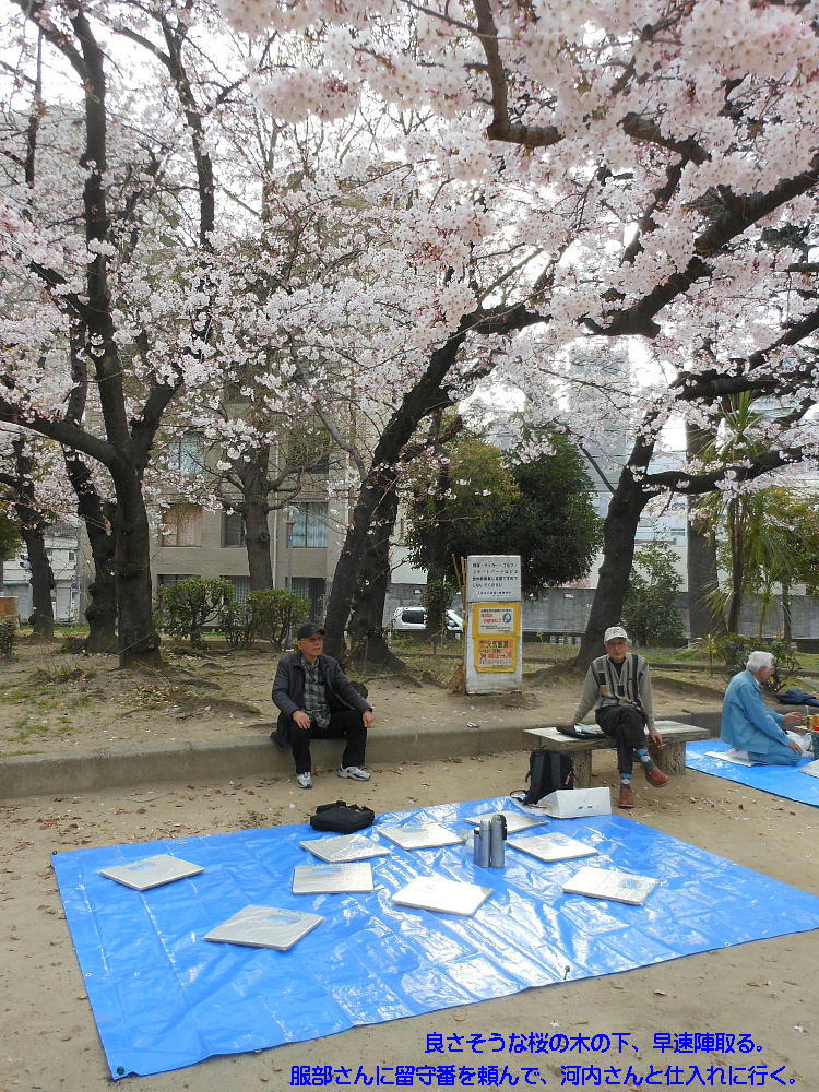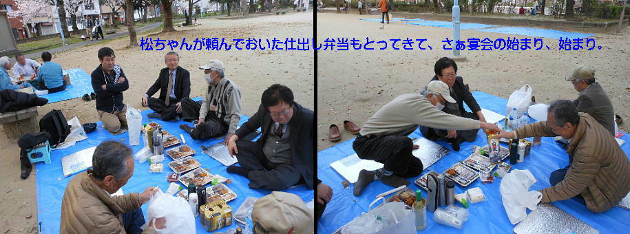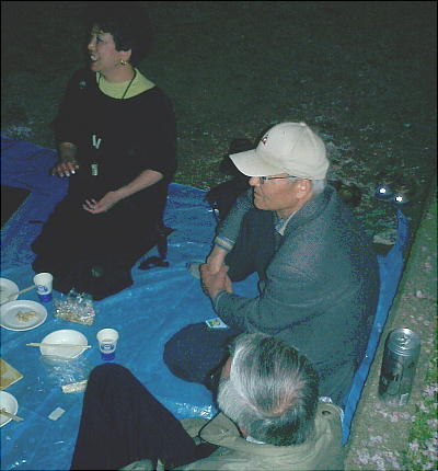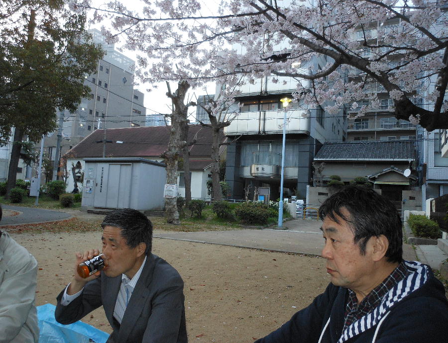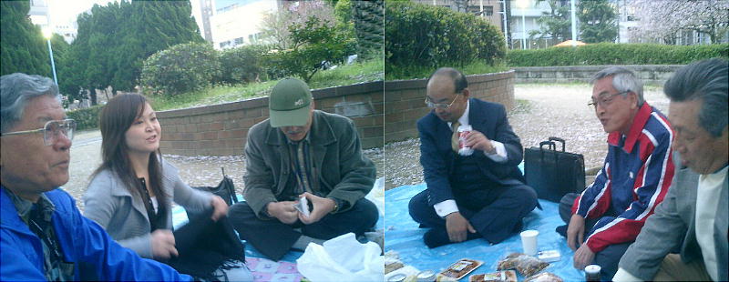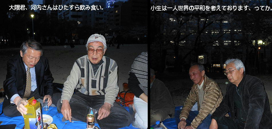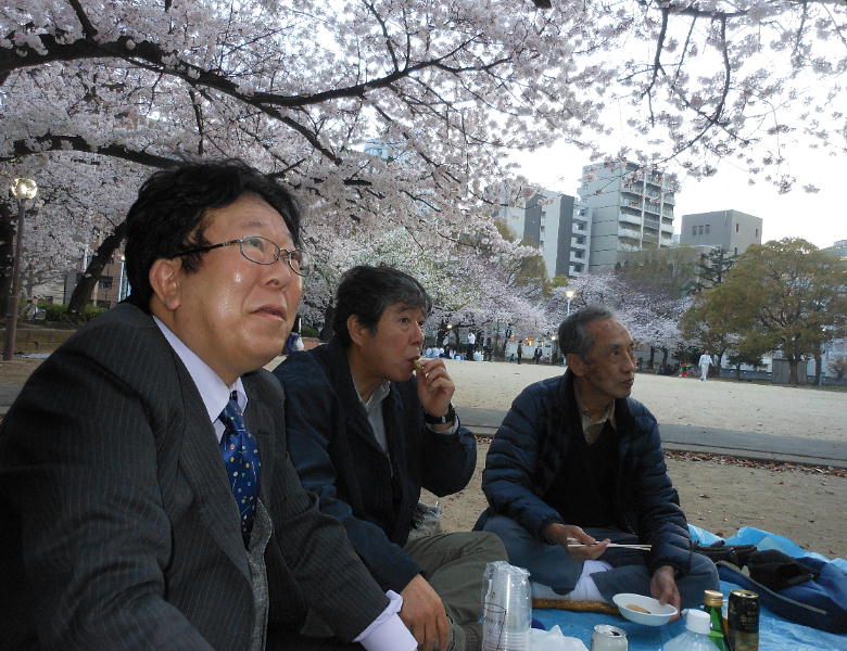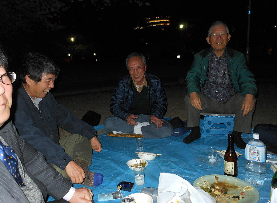 橋爪君、靖さん、郭公さんも始めての参加だそうだ。そうか、もうそんなに永いこと花見やってなかったんや。