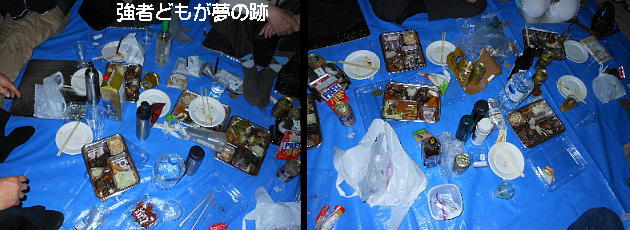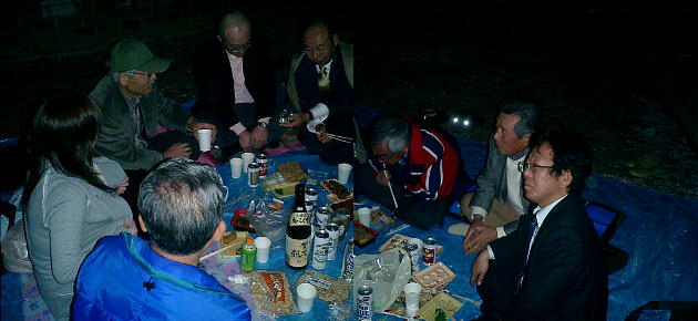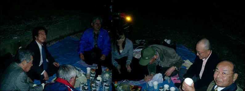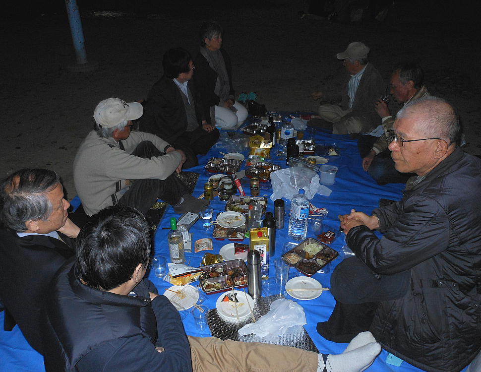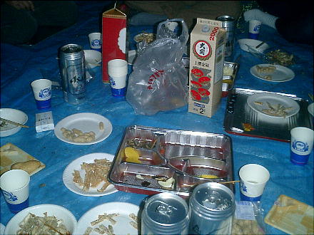 5時に集まった早出組が買い出しを行い、もう6時にはボチボチ酒宴の開始となった。(5時半頃から?)