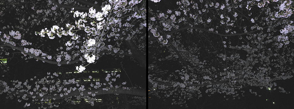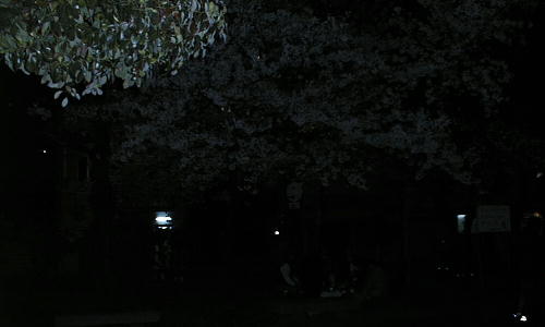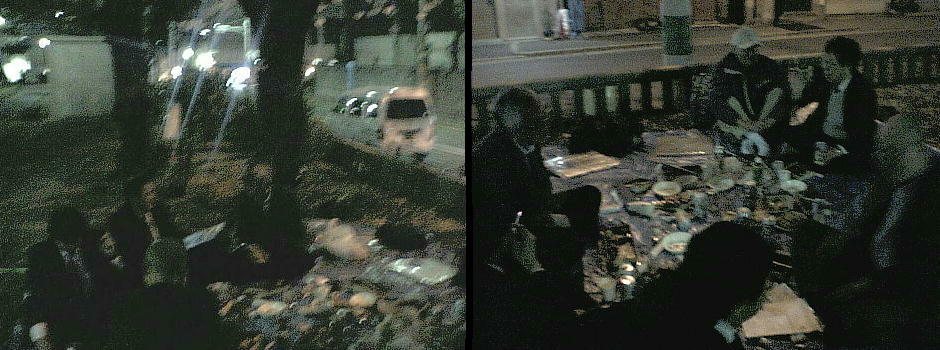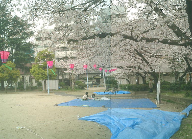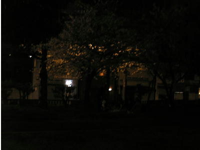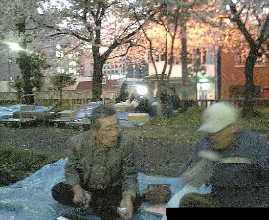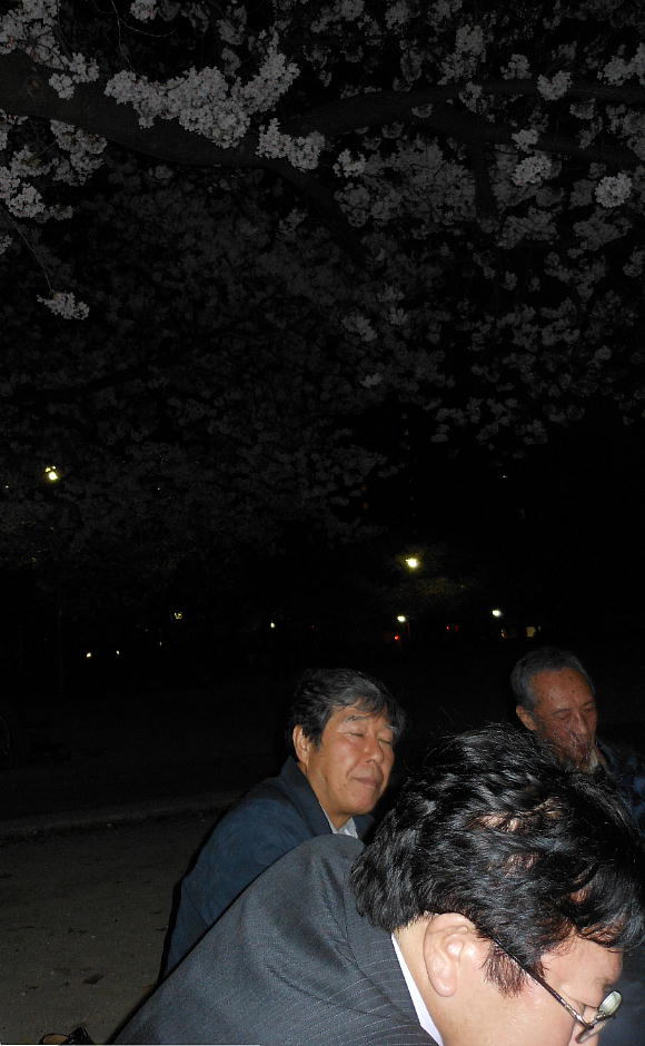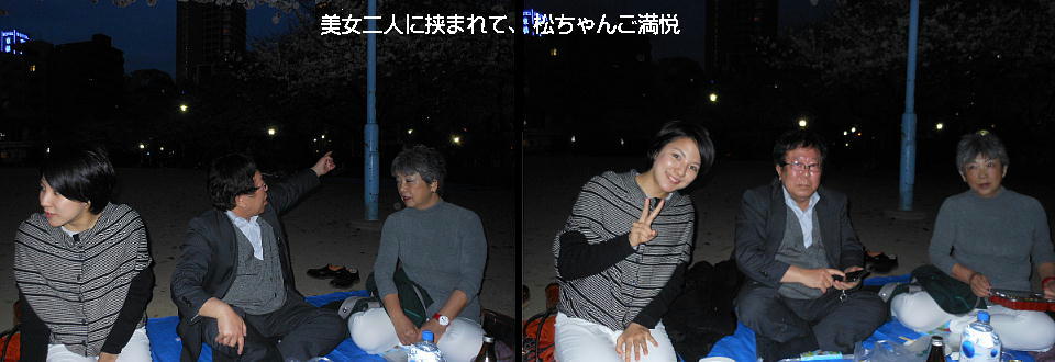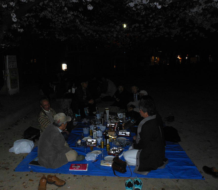 下左が我々の陣取った桜の下。暗くてフラッシュ無しのデジカメの限界やね。