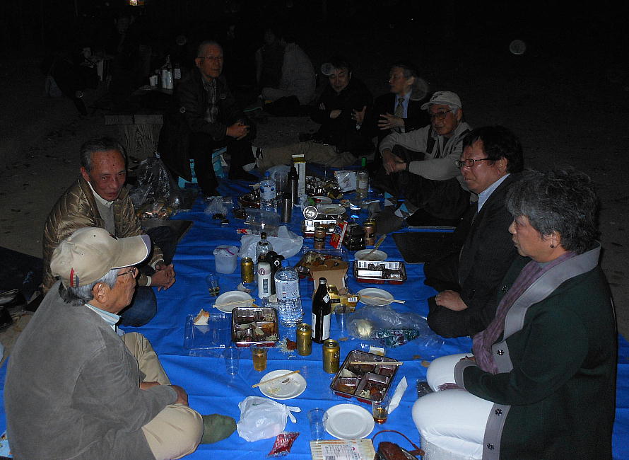 7時前にみなさんが揃って乾杯。今年は満開は早いが、寒さは例年