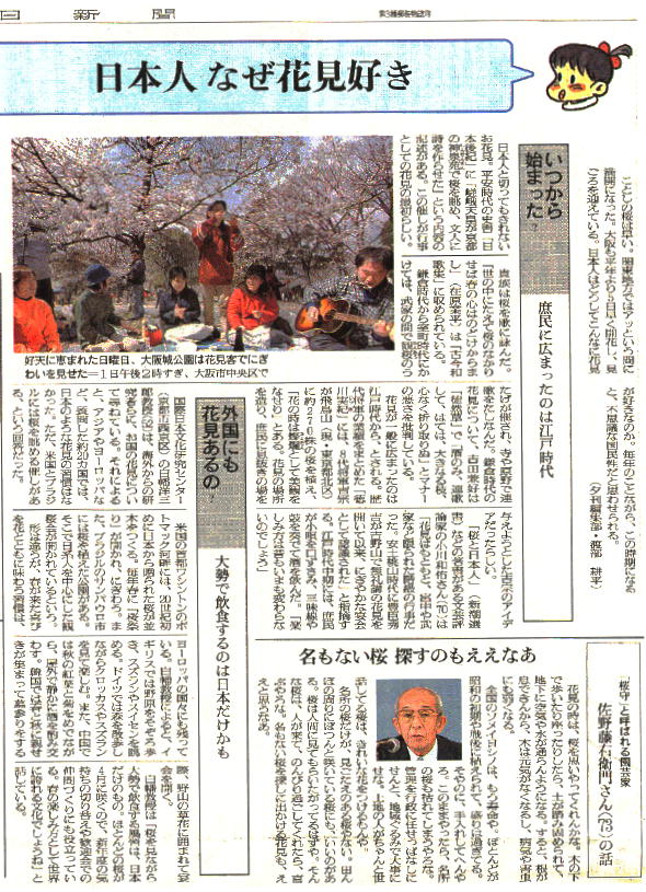 花見の翌日、4月5日の朝日新聞に花見の記事が載っていた。