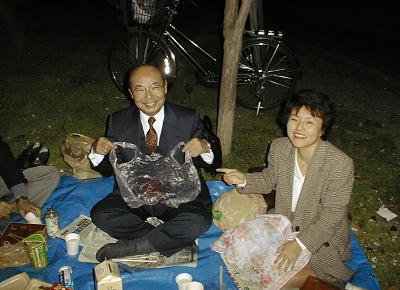家族づれや友人達で静かにお弁当を食べるというのが一般的なようだ。時には酒を飲むこともあるという程度らし