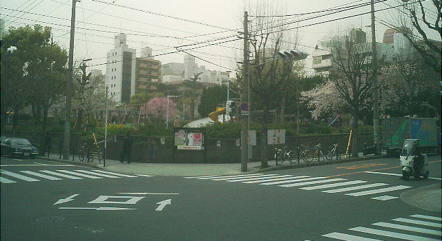 この日の桜橋公園の交差点に咲いていた桜。靫公園も満開に近かった。今年は暦どおりに咲いた気がする。