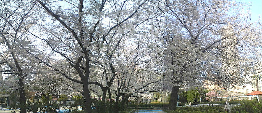上はこの日の2,3日前に写した、我が家の側の公園。桜満開!