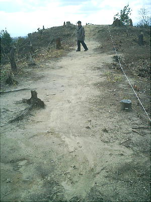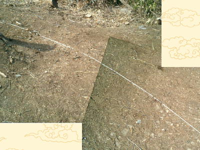 墳頂もほぼ平らに削られていて、前方後円墳だという事を示すためか、細く白いロープで円と線を描いてある。この古墳は、
