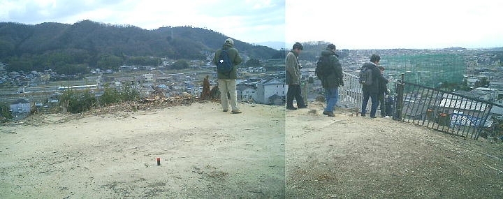 錦織さんが、「あっちが矢田丘陵、あっちが生駒山方面。あそこが大阪と奈良境の暗(くらがり)峠。」と説明してくれる。