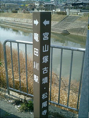 「烏土塚古墳」を下りて西へ向かうと、春日丘の住宅地を抜けて「竜田川駅」へ戻ってくる。線路に沿ってちょっと北へ行き踏み切