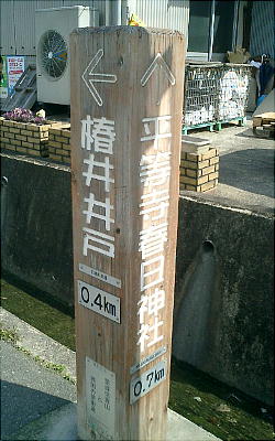勝を祈願すると、一夜にして杖が芽吹いて葉が繁り、冷泉がわき出したというエピソードを持つ井戸。「椿井」という地名の起こり