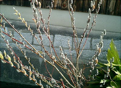 芽吹きだしたネコヤナギ。