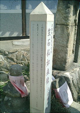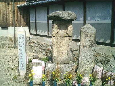れているが、昔、牛馬をつないでいて引き倒されて折損したという。三郷町総持寺の一針薬師笠石仏や勢野西墓地の線刻阿弥陀石仏