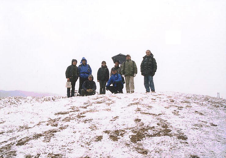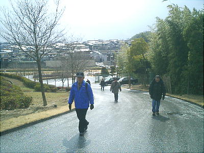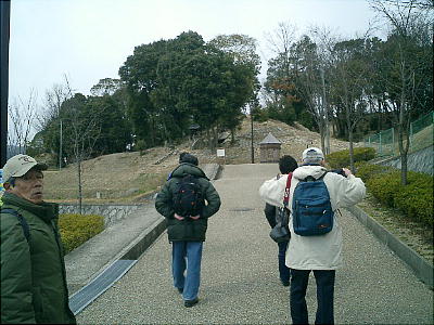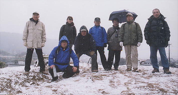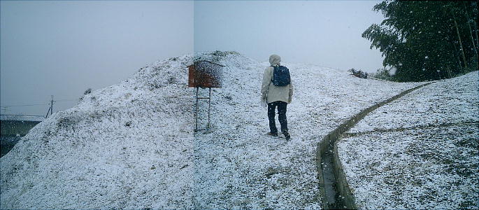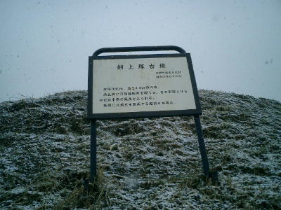 昼食を終えて、剣上塚古墳を目指して歩き出したとたん、吹雪になった。みな風防を被ったり手袋をはめたりしていたが、