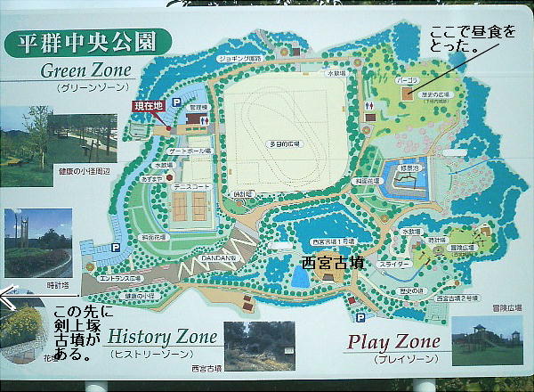 吹雪が止むとまた暖かくなってきて、再び中央公園へ戻り「つぼり山古墳」を目指す。