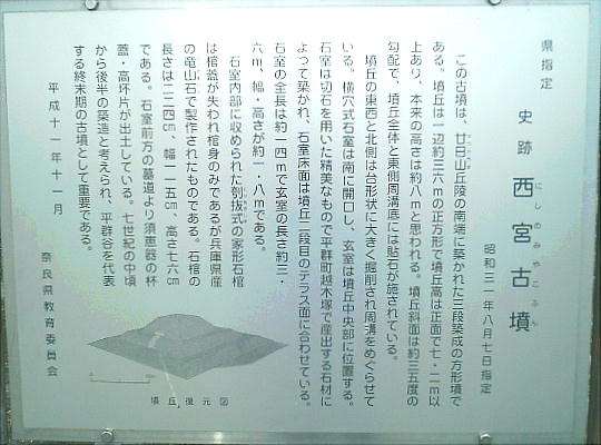 ここにはかって中世に「西宮城」があった所で、平群中央公園内の谷を隔てた所には「下垣内城」があったと言う。西宮古