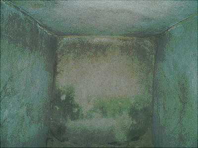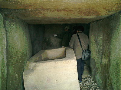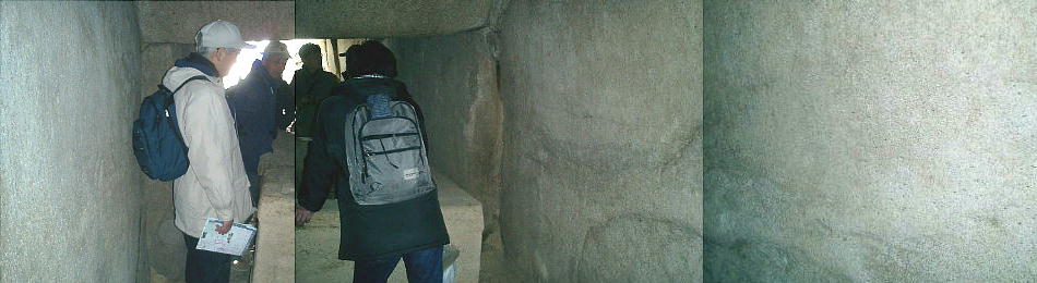 は天井、奥壁、側壁すべて一枚石を使ったみごとなものである。こんな巨石にはなかなかお目にかからない。玄室長3.6m、