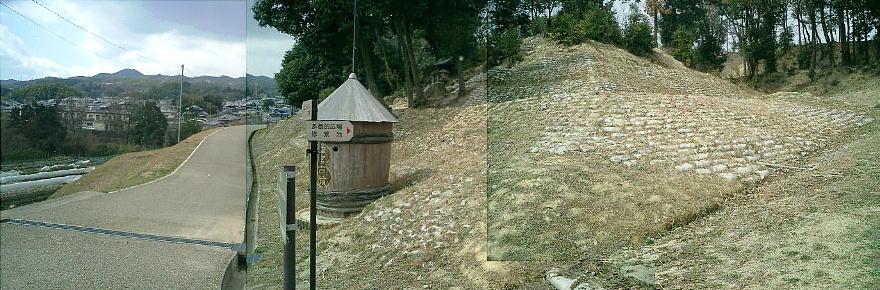 「生駒山地から東に延びる尾根の先端付近に造られた古墳で、直径約20余m、高さ3.6mの円墳。西側には尾根と墳丘と