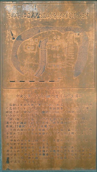 出土しているようだが、現在は遺構は全く残っておらず、わずかに「下垣内城」の遺構が、公園南側のフェンスに囲まれて、