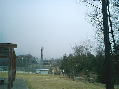 てきた平群神社のちょうど裏側にあたる。残っている城の遺構としてはここだけである。今は、多目的グランド、テニスコ