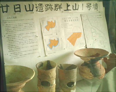 つぼり山古墳へ行く前に寄った平群町公民館。ここに、中央公園の廿日山(はつかやま)遺跡からの出土物の一部が展示し