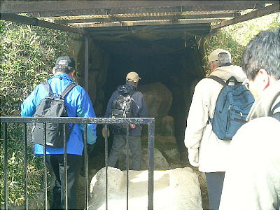 れない。入り口上部にトタン屋根がかぶせてある。
