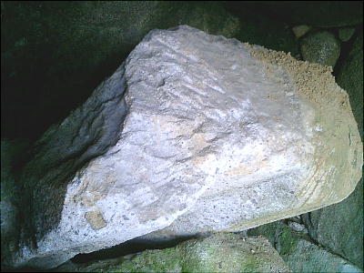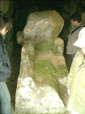 橋本さんが乗っているのは羨道部分に置いてある石棺の身。