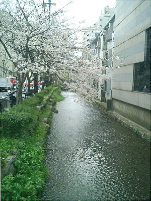 帰りに京都で降りて高瀬川沿いをぶらりと歩いてみた。早くも桜の花びらが高瀬川に散っていた。
