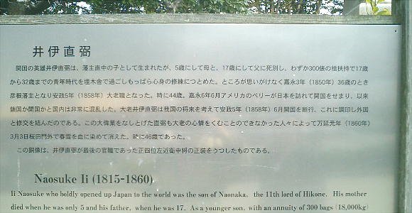 歴代藩主中でも有名なのは何と言っても井伊直弼(いいなおすけ)である。「安政の大獄」に始まる尊皇攘夷