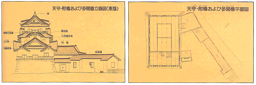 何度か修理されている。天守閣石垣は、外見を見ると一見無造作で、手当たり次第に積んでいったように見え