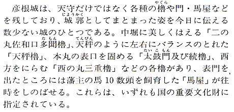 ことから「御奉書御普請」と呼ばれた。彦根城はこれが16回、その他の修築が20回を数えた。明治以降も