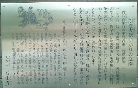 間に「郎澄大徳(ろうちょうだいとく)ゆかりの庭園」というのがあった。どうやら石山寺中興の祖が作った庭園ということら