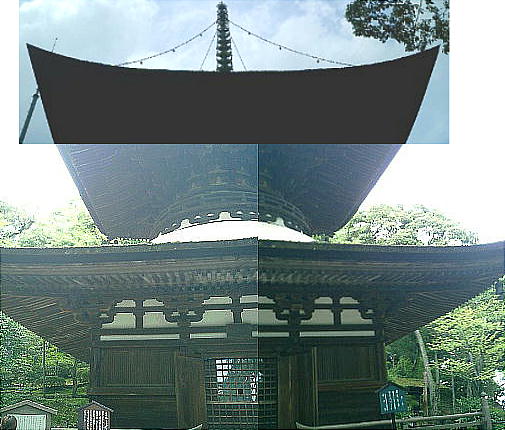 の建造として評価されている。建造当初の三間多宝塔、檜皮葺形式を保っている。(1194)