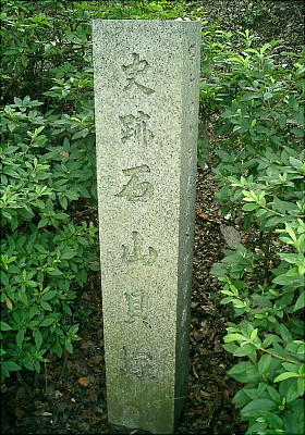 その「三鈷の松」から10mほど先に、「石山貝塚」の碑と説明板があった。縄文早期の遺跡で、土器、骨格器、石鏃などが出土している。