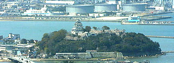 唐津城は、唐津湾に面した小高い満島山に配置され、松浦川の流れを引き寄せて南側には堀割(ほりわり)を、東側には河口