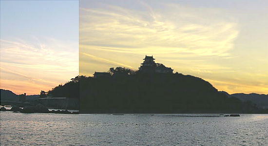 夕日に映える唐津城