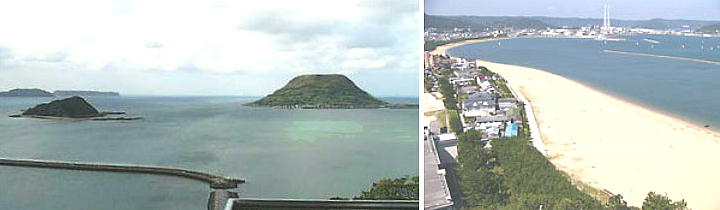まま残っている。上左は天守閣から眺めた玄界灘で、右の鉢を逆さにしたような島が高島である。ここに高島神社があり、買