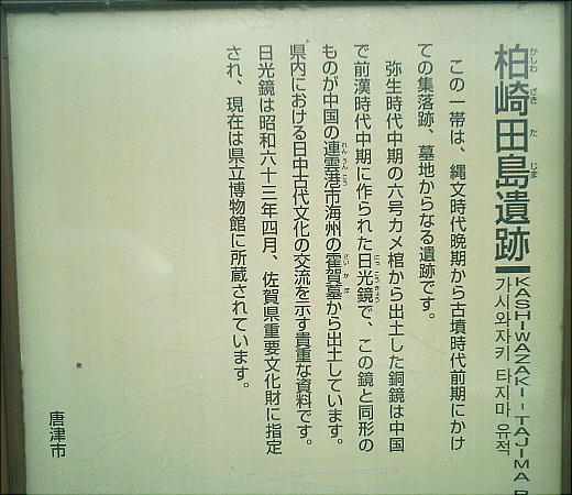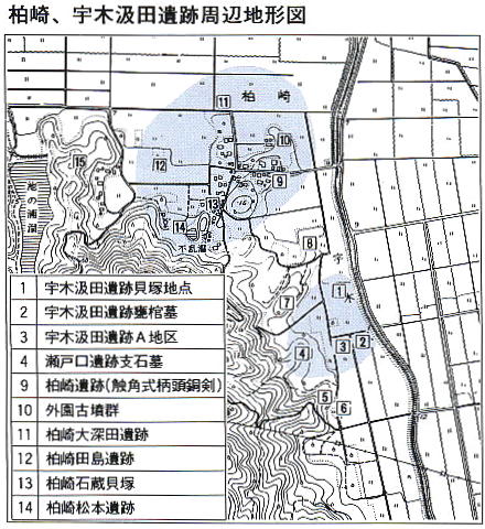 (*)佐賀県唐津市柏崎遺跡のほか、福岡県糸島郡前原町三雲遺跡、山口県西端の向津久保遺跡。
