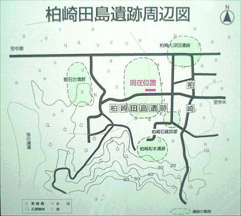 柏崎には幾つか発掘調査された地点があり、それぞれ柏崎xx遺跡とその地区の名前を付けて示されている。柏崎石崎遺跡