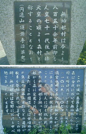 いるのを見て、私財を投じて再興したので、人々は彼の徳を称え、それまで「無垢根(むくね)」と呼んでいた村の名前を「森」