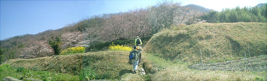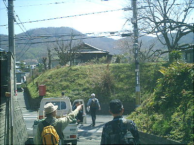 寺の集落を過ぎ、住吉神社の手前の道を真直ぐ東に上り、創価学園の小公園へ。今日の昼食はこの桜の下に予定してあった。